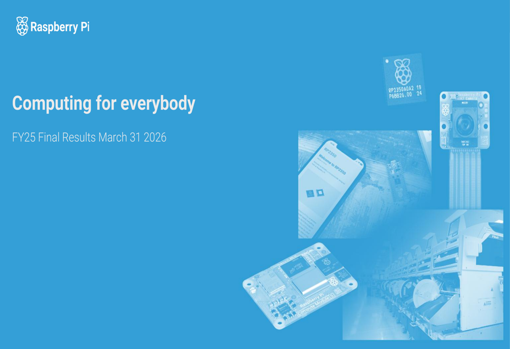 Raspberry Pi Holdings plc designs and develops single-board computers, compute module, and semiconductors in the United Kingdom, Europe, the United States, Asia Pacific, and internationally. The company offers computers and microcontrollers, cameras and displays, add-on boards, power supplies and cables, cases, and peripherals. It also provides Raspberry Pi Connect, a secure remote access solution for Raspberry Pi OS which allows to connect to your Raspberry Pi desktop from any browser; Raspberry Pi Desktop for any PC or Apple Mac computer; Raspberry Pi Imager, which installs Raspberry Pi OS and other operating systems to a microSD card and OS software products; and Raspberry Pi OS, a supported operating system for organizations. In addition, the company offers Raspberry Pi Press, which produces magazines and books, as well as the Raspberry Pi Store. The company serves resellers and original equipment manufacturers; and industrial and embedded applications, enthusiasts, and educators. Raspberry Pi Holdings plc was incorporated in 2012 and is headquartered in Cambridge, the United Kingdom.